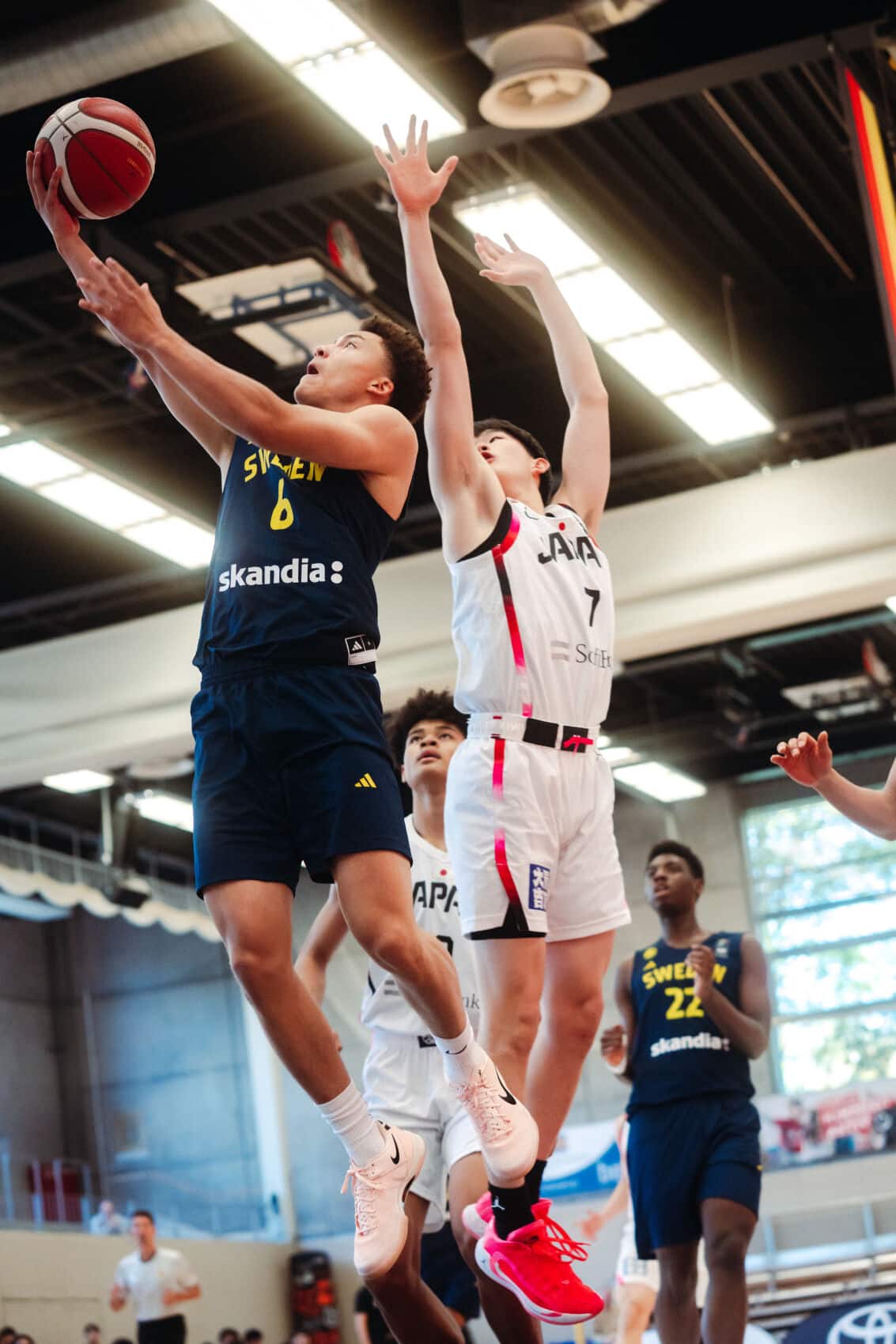 Von Beginn an legten beide Teams ein hohes Tempo vor. Defense wurde klein geschrieben und so durften sich die Spieler offensiv ordentlich „austoben“ (13:13, 4.). Schweden mit dem treffsicheren Malcom Berglnd Price übernahm die Führung (25:33, 10.), kam aber nicht richtig weg vom Gegner. Wie man es von den Japanern kennt, waren sie schnell wieder dran (33:33, 12.), nur um direkt wieder mit 33:43 in Rückstand zu geraten (15.). Zur Pause der unterhaltsamen Partie lief Japan einem leichten Rückstand hinterher (47:53).