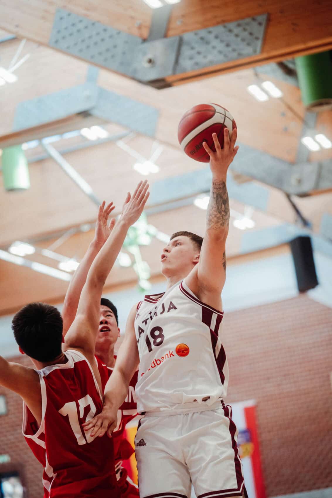 The same pattern continued after the break. China kept pushing for a comeback, but Latvia held them off, with Aizpurs making key plays to maintain a 55–42 lead (26th minute). But then the Latvian coach called a timeout to regroup his team. By the 29th minute, the lead had been trimmed further (59–49), and Latvia started to look a bit shaky. China cut it to 67–63 (36th minute) and then even took the lead at 69–67 (38th minute). Much like Italy earlier, Latvia seemed to have let the game slip away. However, they responded with a three-pointer to regain the lead and were up 76–73 with 20 seconds left. China couldn’t turn it around from there.