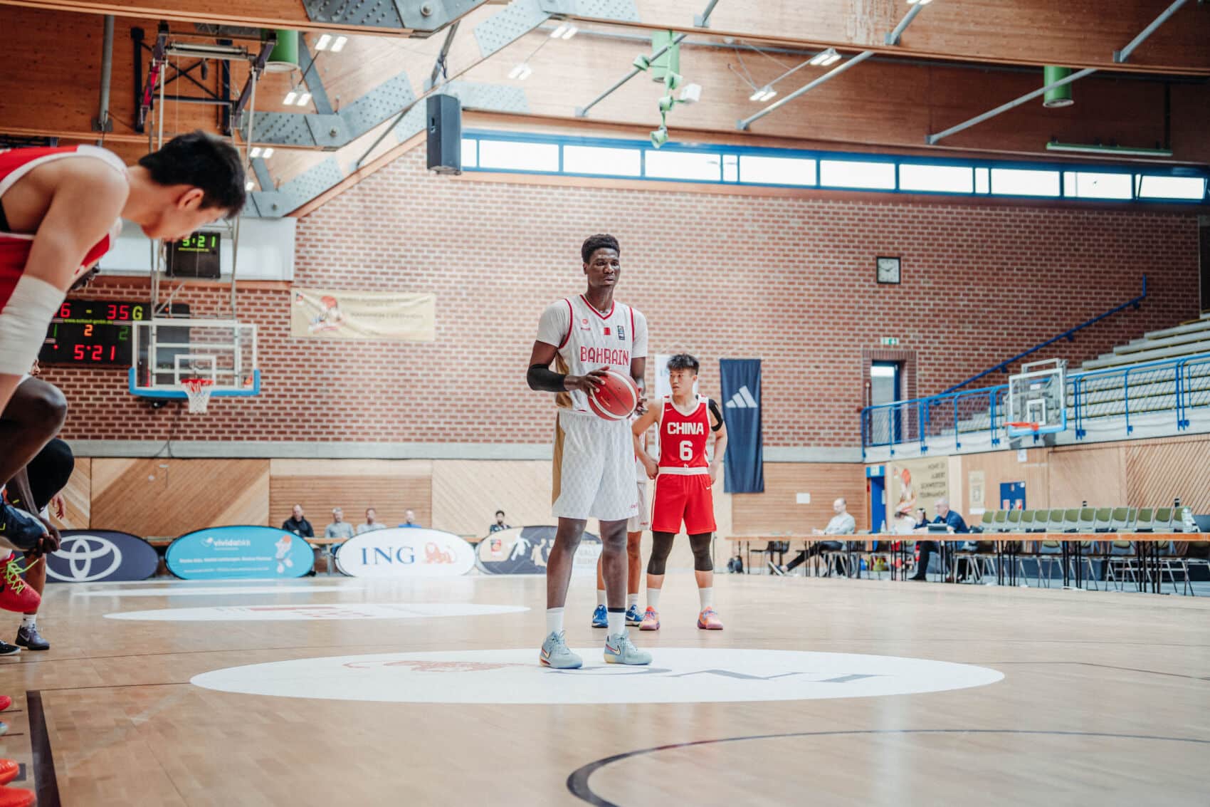 Im ersten Spiel des Tages standen sich die beiden Gruppenletzten, China und Bahrain, für das Spiel um Platz 11 gegenüber. Die Chinesen konnten schon früh zeigen, dass sie klar überlegen sind, trafen gut aus der Distanz und führten nach zehn Minuten mit 11:27. Der erste Bahrainer musste bereits nach neuen Minuten und zwei unsportlichen Fouls die Halle verlassen. Das zweite Viertel lief bei den Bahrainern etwas besser, aber trotzdem war China die stärkere Mannschaft, offensiv wie defensiv. In die Halbzeitpause ging es mit 27:41.