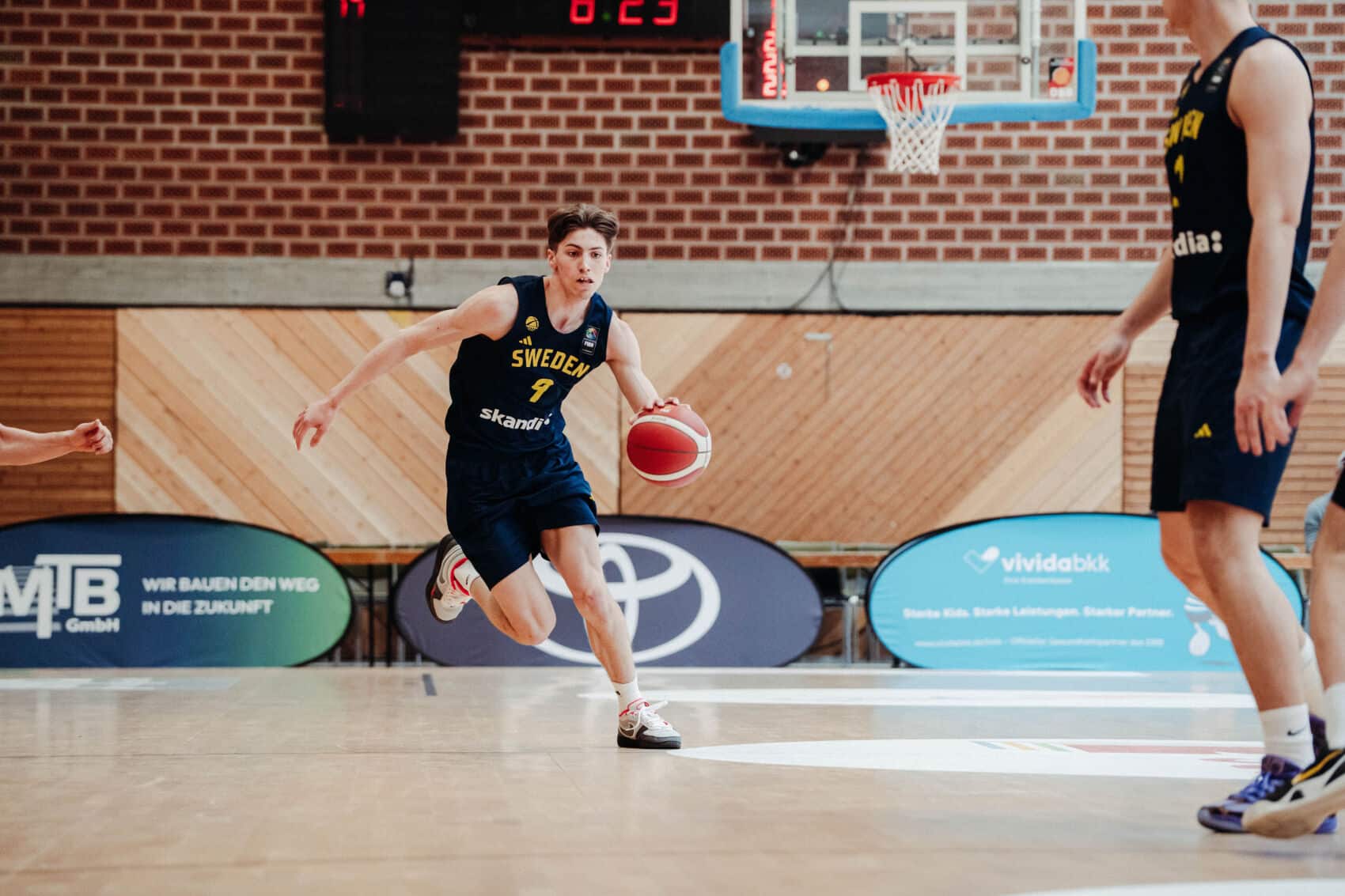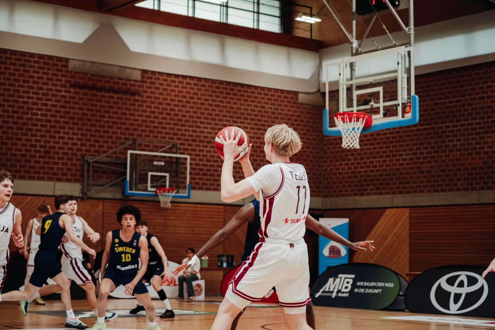 In der zweiten Partie des Tages entschied sich zwischen Schweden und Lettland der neunte Platz. Bei den Letten fielen am Anfang die Dreier und so konnten sie sich früh eine Führung erspielen (16:6, 6.). Die Schweden führten in der ersten Halbzeit zwischenzeitlich mit 16 Punkten, doch als Schweden defensiv umstellte und so lettische Punkte verhinderte kommen sie auf 39:33 ran. Ein Buzzerbeater der Letten stellt zum Halbzeitstand 43:33.